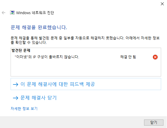 해당 문제는 게시글 제목과 같이 이더넷 구성으로 인해 ip가 제대로 잡히지 않는다는 오류입니다.