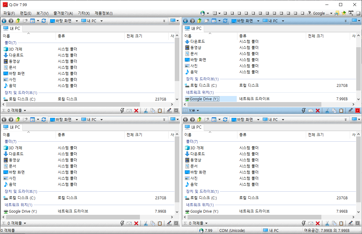 해당 프로그램은 윈도우 탐색기를 4개의 창에서 보여주는 유틸리티입니다.