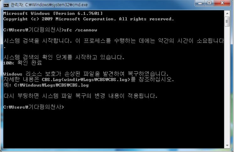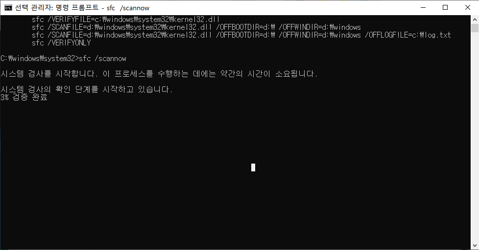 (2) CMD에서 SFC /SCANNOW 명령어를 실행해 검사 실행하기