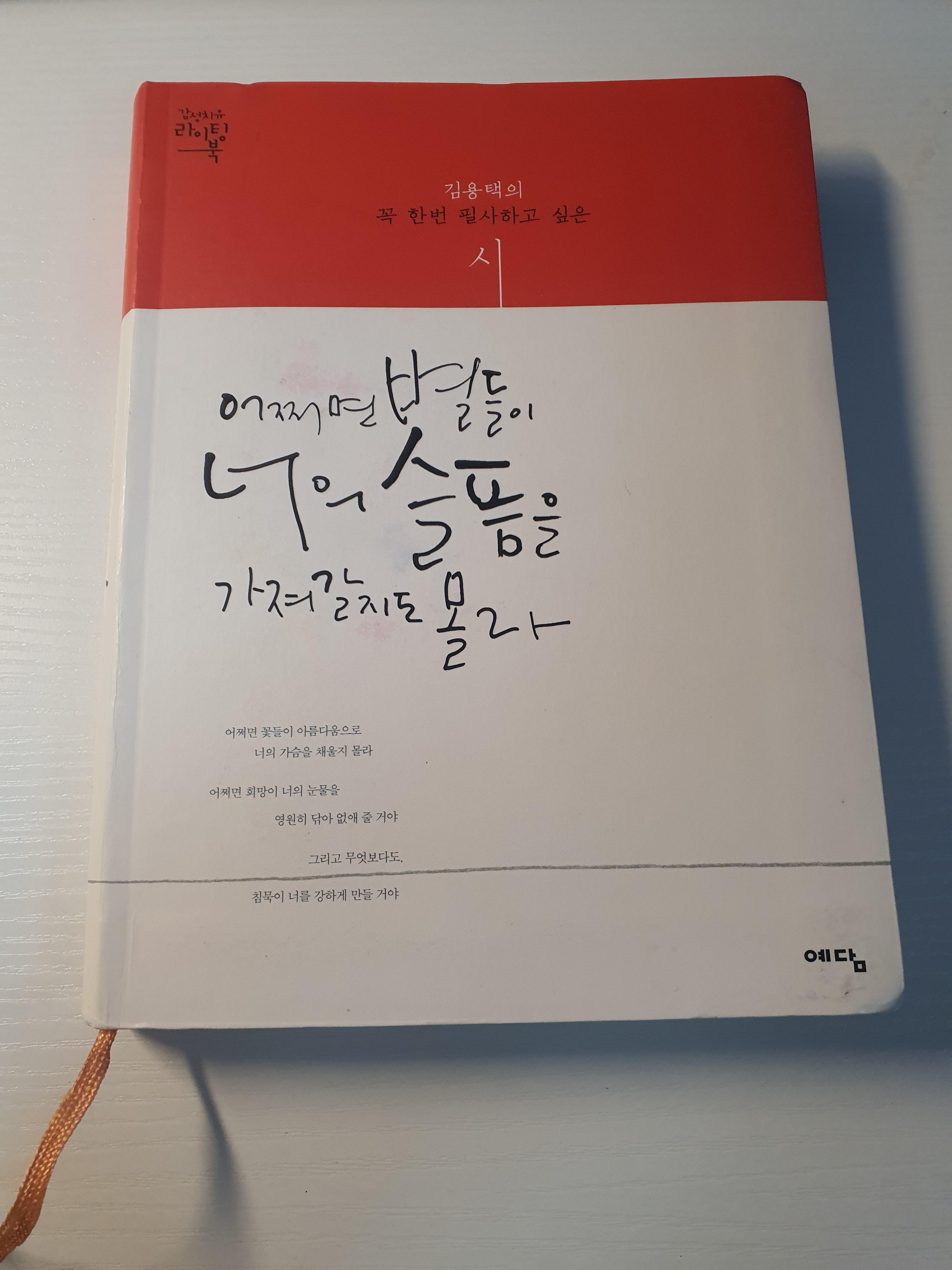 먼저 시를 읽고 생각하면서 필서를 하는데 마음이 진정도 되고 시의 내용들도 하나 같이 잔잔한 느낌을 주는 시들이여서 제가 추천드리는 책 중에 하나입니다.